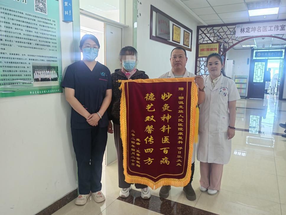 鄂温克旗人民医院骨科病房内,忍受膝痛多年的武阿姨(化姓)这两天喜笑颜开,因为经过林定坤教授的手法治疗后症状明显好转,她甚至在病房中高兴地跳起舞来。