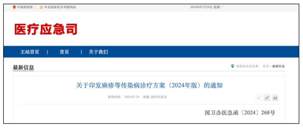 7月29日,国家卫健委发布通知,制订了麻疹诊疗方案,修订了登革热、人感染禽流感诊疗方案。诊疗方案主要内容包括相关传染病的病原学、流行病学、发病机制、病理改变、临床表现、并发症、实验室检查、诊断、鉴别诊断、治疗、预后、预防等。