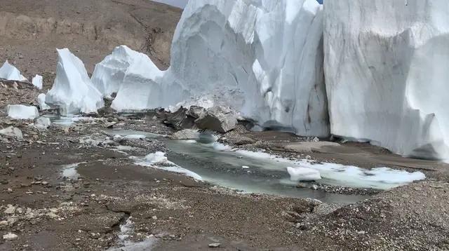 王先生称,从俄热村到第一个冰塔林要翻6000垭口、20来公里,全是上坡路,翻过6000垭口下到冰塔林需要下一段陡坡,且陡坡下方是万年冰川。“下坡途中路况很不好,万一不小心踩到暗冰有可能滑坠到湍急的冰川融水。”经过这一段,需再趟一次河才能到达冰塔林。横穿该冰塔林后还有另一个冰塔林。
