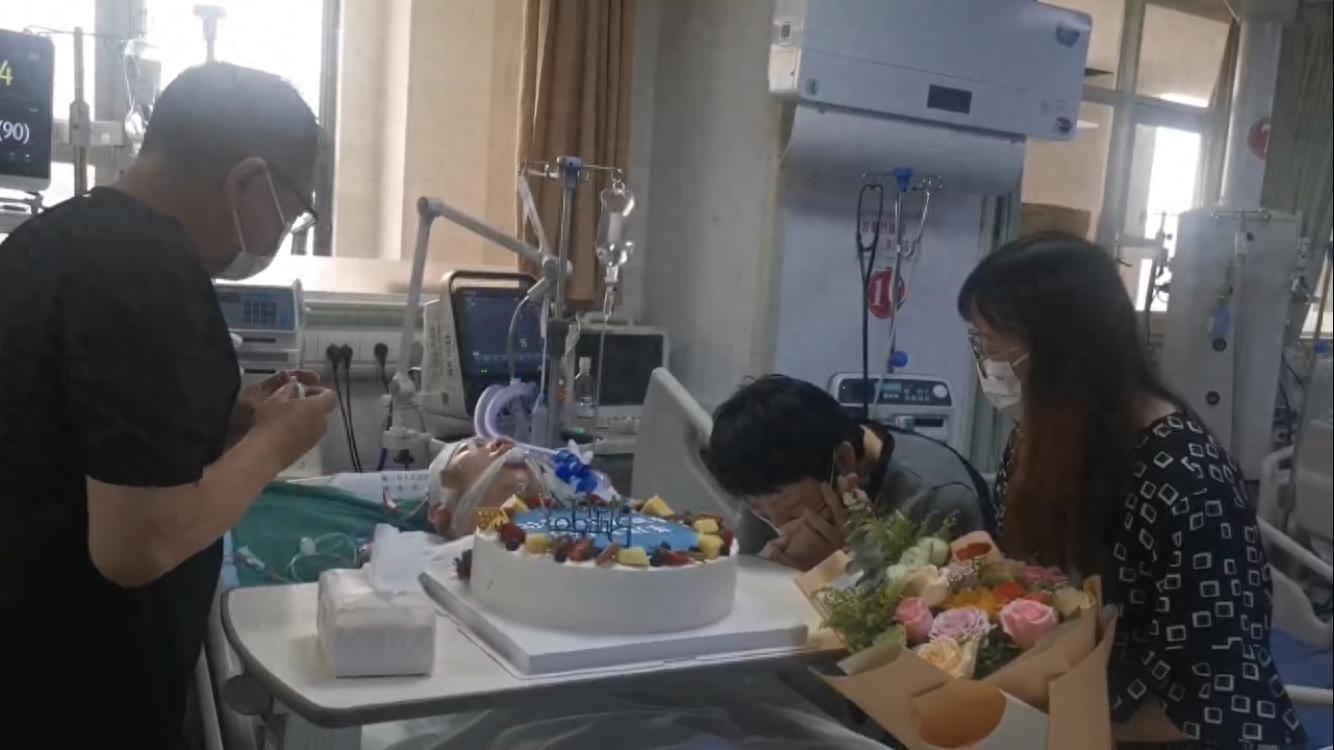 芦国庆称,6月23日是儿子23岁生日。家人给他准备了生日蛋糕,请同学录了生日歌,在重症监护室为他过了最后一个生日。
