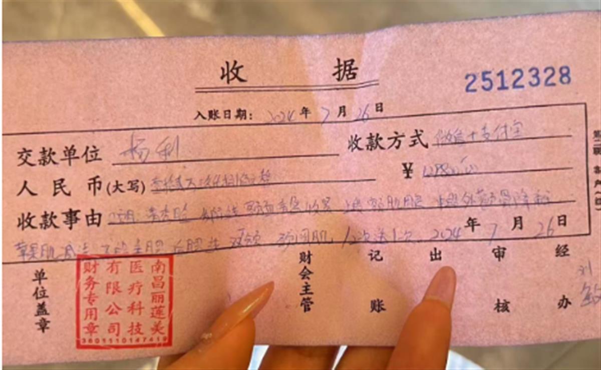 杨女士介绍,在一个朋友的介绍下,7月26日,她向南昌丽莲美医疗科技有限公司(以下简称丽莲美医疗科技)缴纳12.98万元进行清秀脸的医美项目。缴费后,她发现进行医美项目的却为南昌咏泰医学美容门诊有限公司(以下简称咏泰医美)。当时,她疑虑不已,可对接的医美服务人员却让她放心,操作的医生是一些行业大咖,将会为她带来品质的医美服务体验。随后,她在咏泰医美接受了“爱尔菲琳”等药物的注射,没想到注射区不仅出现色斑,半月后眉骨等注射区一直神经痛。