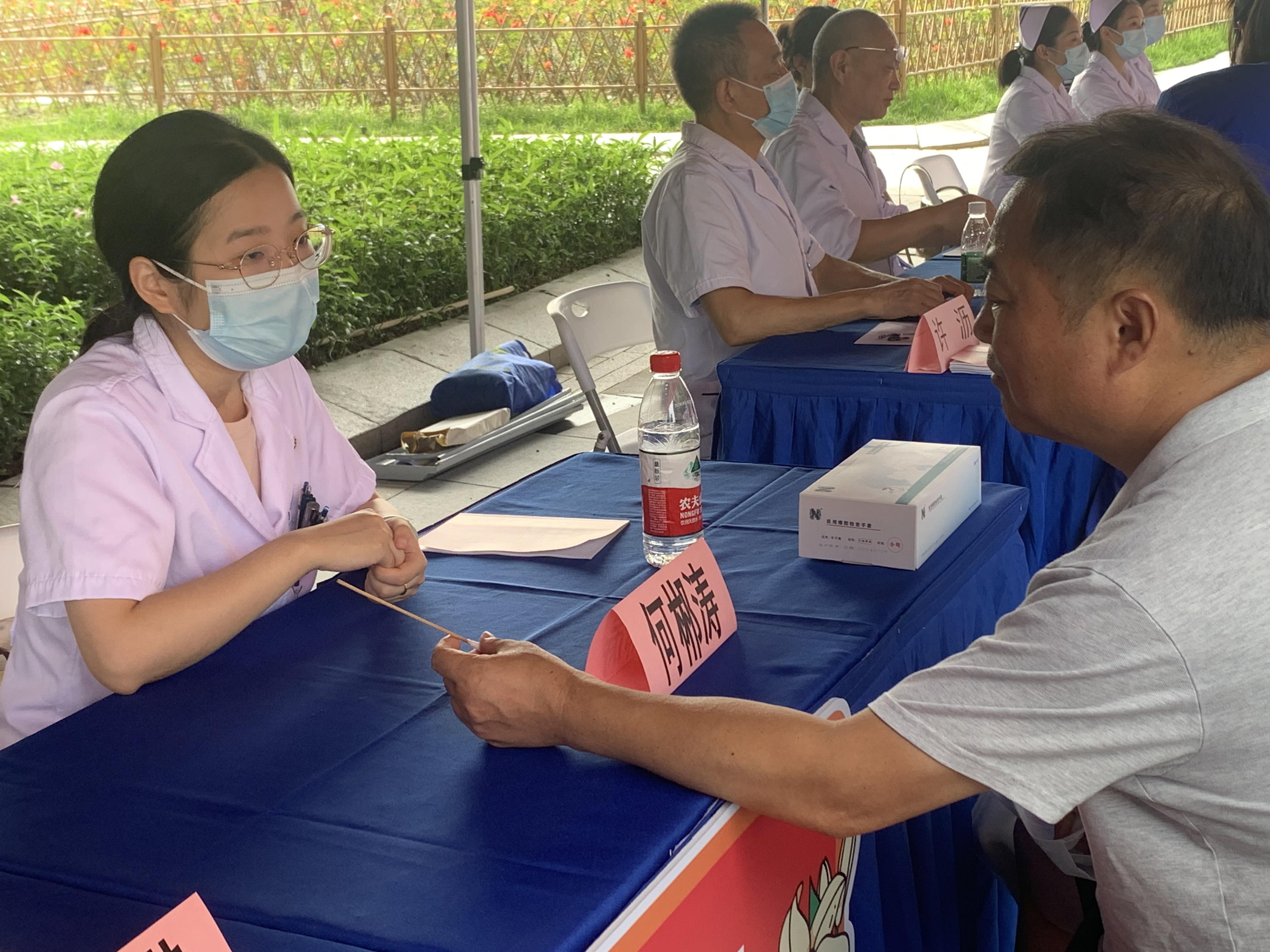 在广州花城广场设立的残疾预防社区公益行脑血管病科普义诊活动现场,南方医科大学南方医院的专家们为前来咨询的群众免费测量血压、血糖,此外,还提供中医诊疗服务,包括把脉问诊、拔罐疗法、针灸治疗等。