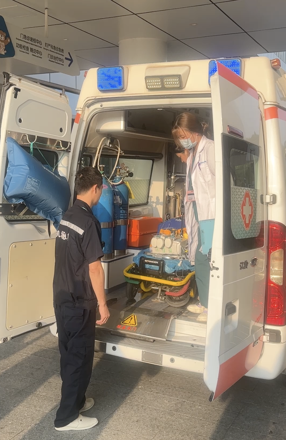 8月10日15:39飞机顺利抵达广州白云国际机场。而此时,广州市妇儿中心新生儿专科培训医生白文娟早已经在机场等候。17:40分左右救护车到达广州市妇儿中心增城院区,很快孩子被送入了新生儿科。近7个小时,一路护送,实现了患儿从床边到床边的转运。