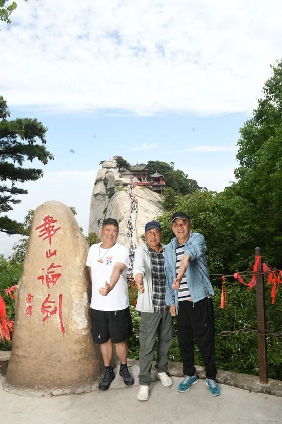 在华山南峰的最高峰,“透龄”16年、21年、24年的3位肾友站在一起,露出手臂上微微鼓起的内瘘——那是他们的“生命线”,在动脉和静脉之间搭了一条血管通路,有助于透析前的穿刺。他们大笑着,合了一张影,旁边的石头刻着4个字“华山论剑”。