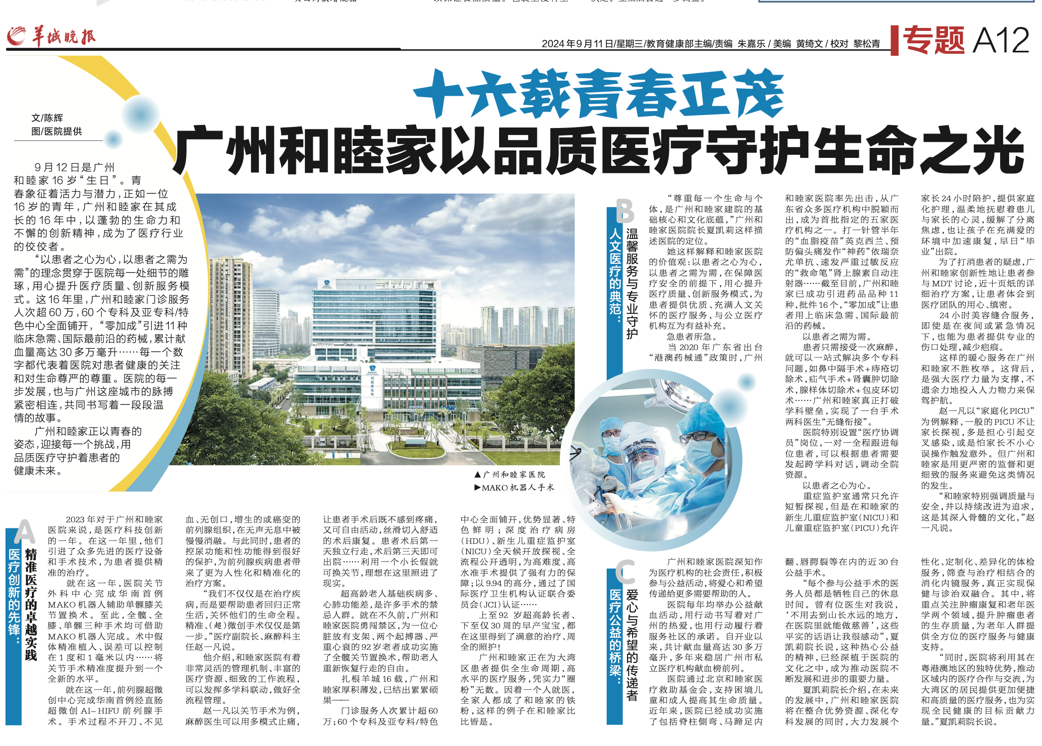 9月12日是广州和睦家16岁“生日”。青春象征着活力与潜力,正如一位16岁的青年,广州和睦家在其成长的16年中,以蓬勃的生命力和不懈的创新精神,成为了医疗行业的佼佼者。