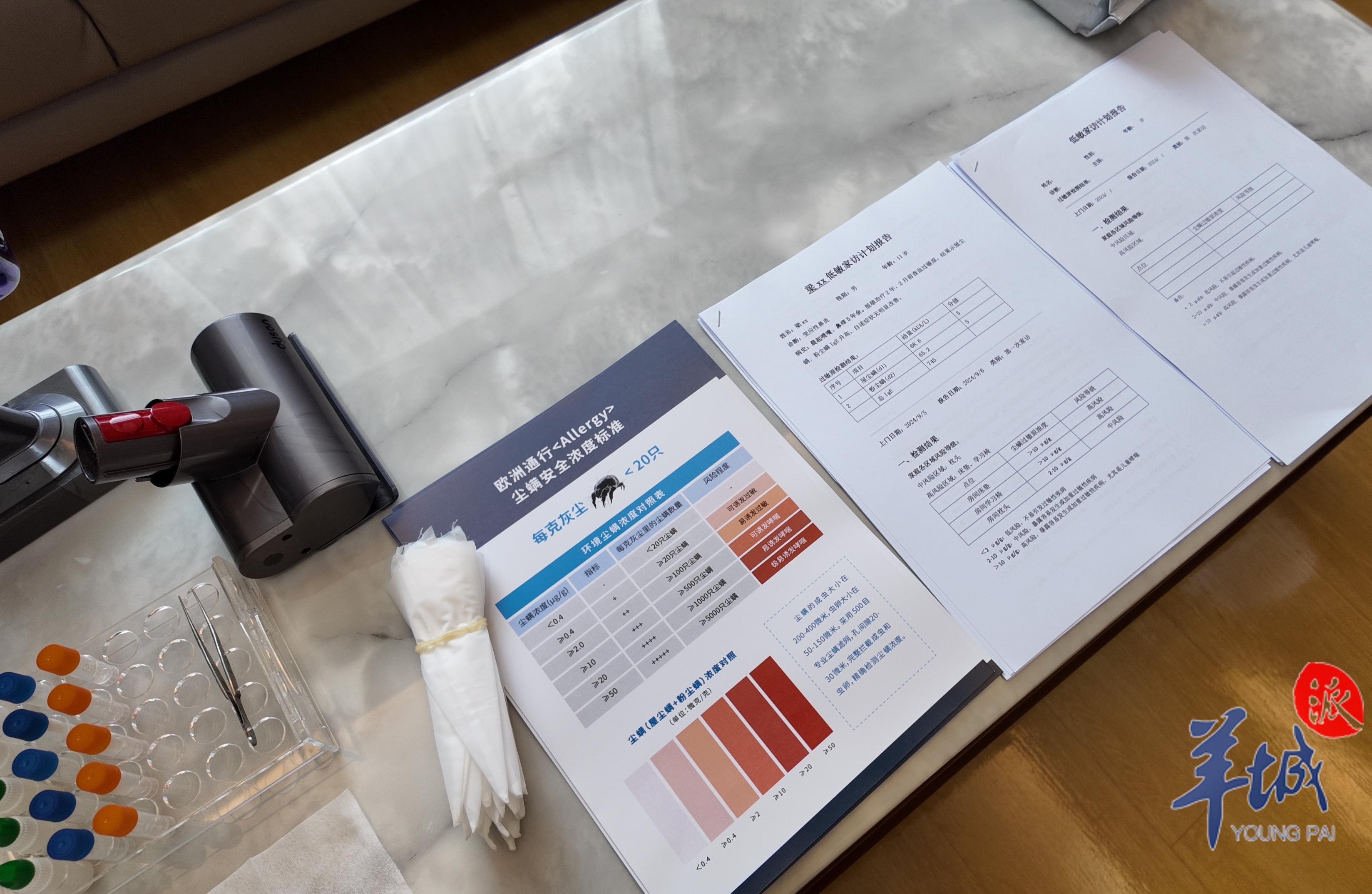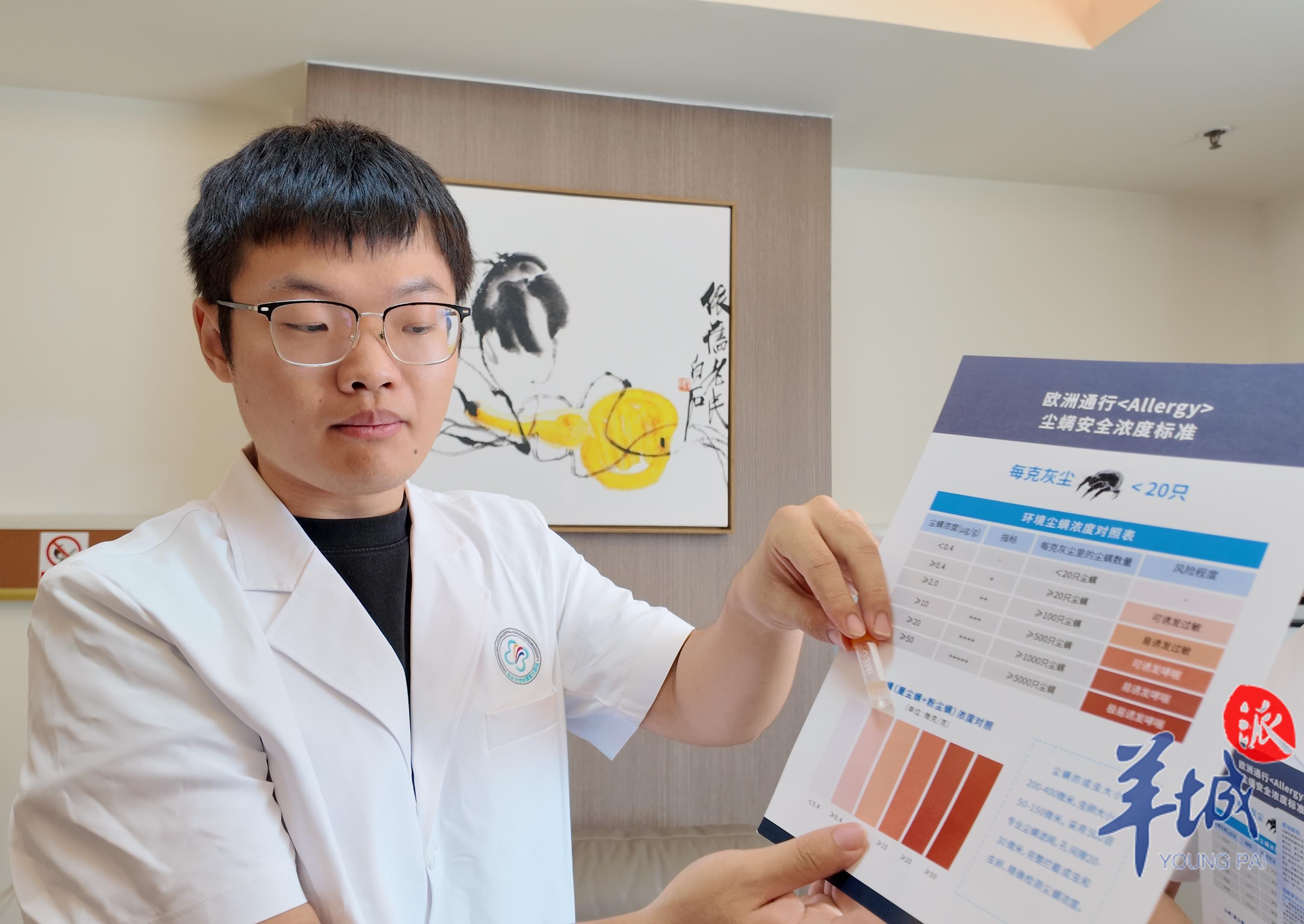 尘螨、动物毛屑、花粉……相信“过敏星人”对这些过敏原再熟悉不过。来到中山三院变态反应(过敏)科的模拟居家试验室,医护人员正在开展环境尘螨浓度测试。