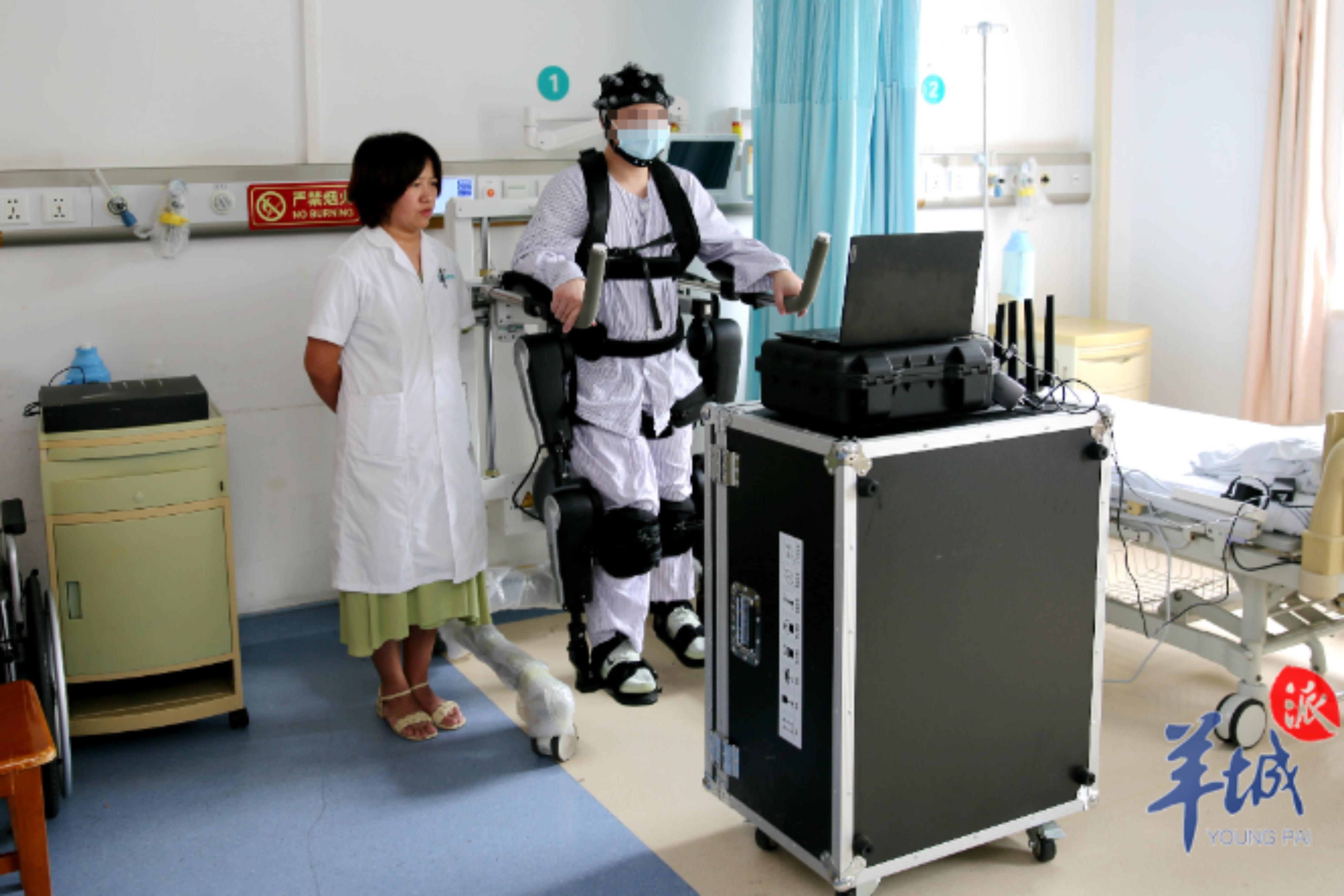 中山三院院长、骨科学科带头人戎利民教授介绍,脊髓损伤的患者存在肢体感觉、运动功能损失,向上传导的身体信号少了,控制中心也无法向下传递信息。患者使用脑控外骨骼机器人后,通过视觉和脑想象力的脑电触控,既能控制机器人,还能帮助大脑皮层恢复,在情绪上也有积极作用。