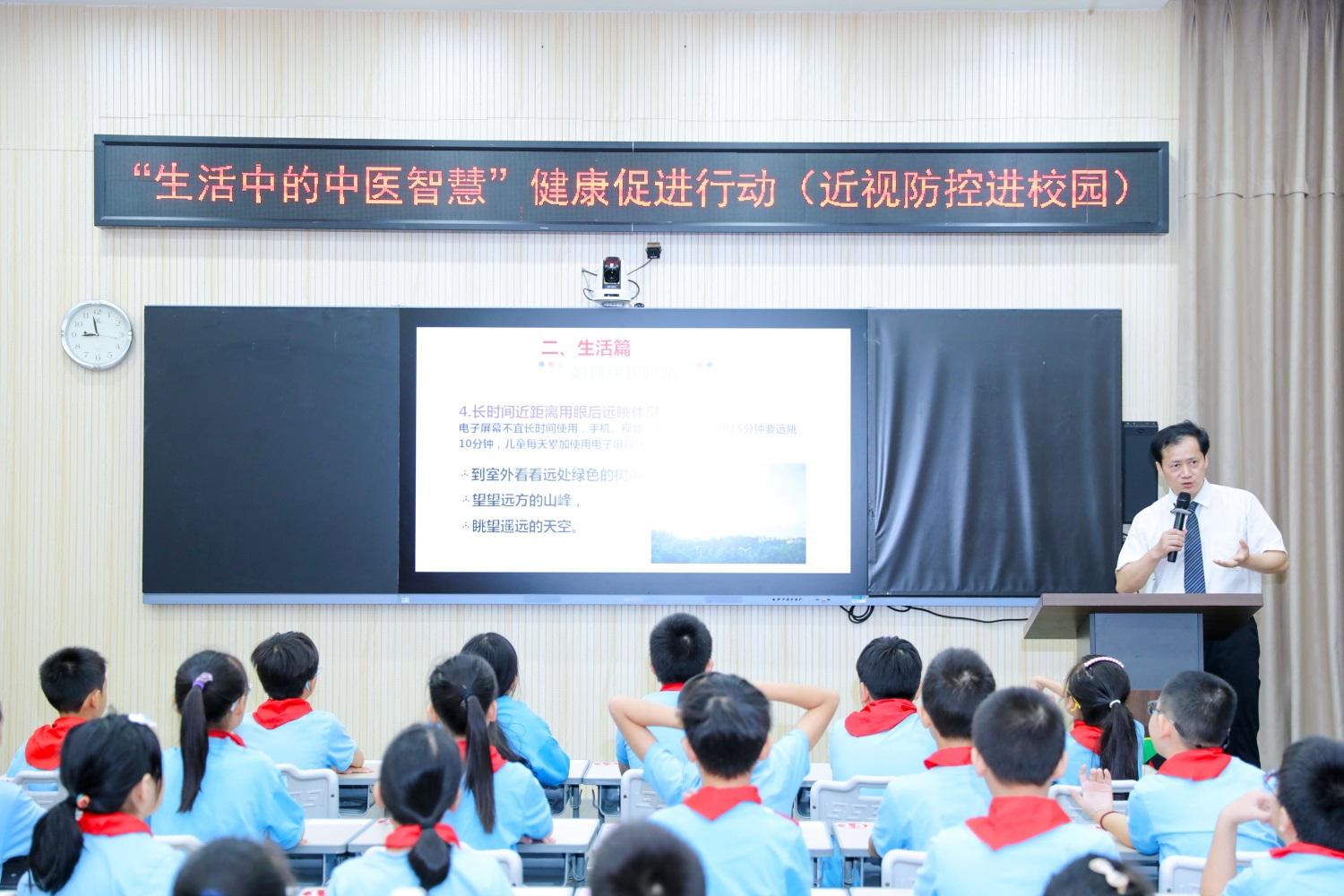 “做眼保健操需要闭着眼睛吗?”“按摩耳朵的穴位对眼睛也有用吗?”讲座现场,小学生们争相举手发问,现场气氛热烈。