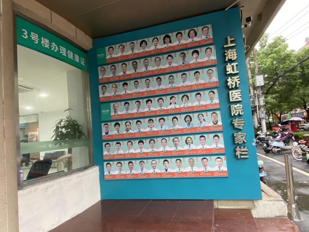 记者看到,位于虹梅路、环镇南路交叉口的医院门诊综合楼共5层,土黄色外墙上挂着红色醒目的“上海虹桥医院”“医保定点”标识。进门处的上街沿,一侧墙面上是“上海虹桥医院专家栏”,张挂着近70名专家的照片和简介。