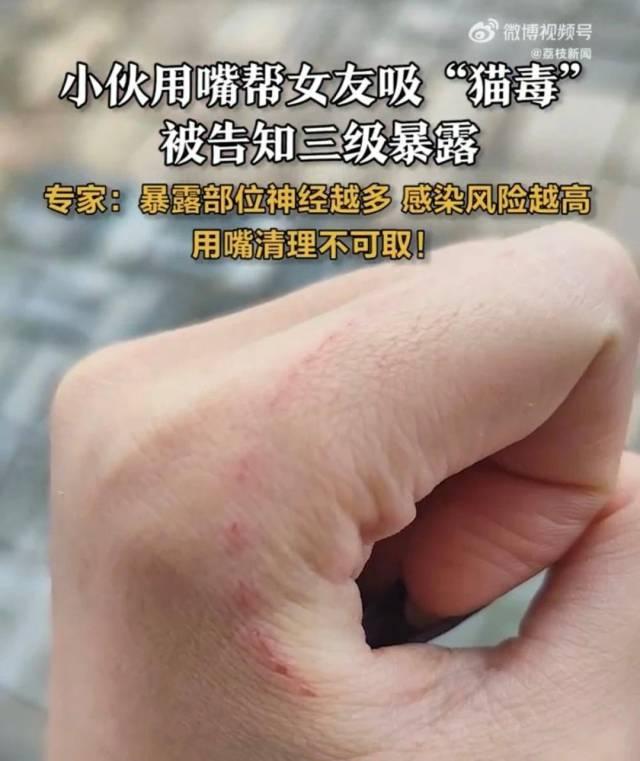 2023年10月14日,江西南昌一小伙因用嘴帮被流浪猫抓伤的女友清理伤口,被医生告知属三级暴露。