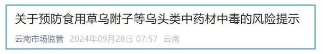 今年9月28日,云南省市场监督管理局发布中药材中毒风险提示。