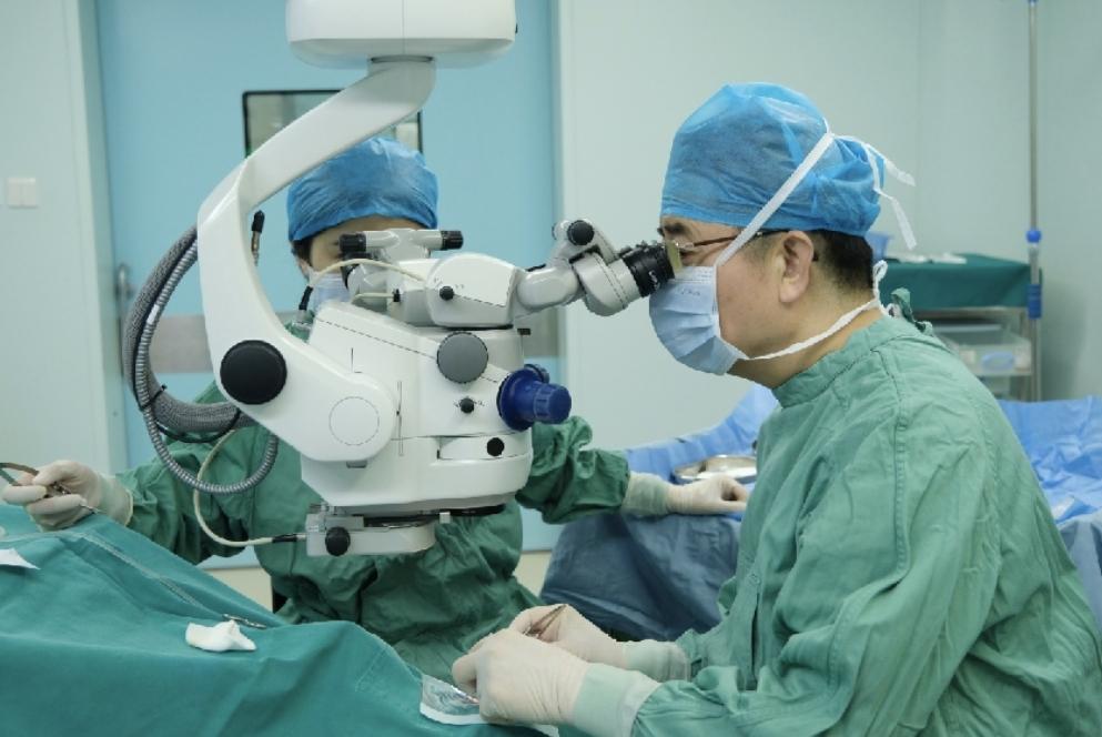 深圳普瑞眼科医院手术室,院长刘红山教授专注看着显微镜,手上行云流水地操作:移除病变角膜,制作植片,放入植床,缝合。不到一个小时,一台角膜板层移植手术完成了。作为知名的角膜及眼表疾病专家,从医30多年来他完成近万例角膜移植手术,让众多患者拥抱光明,点燃希望。
