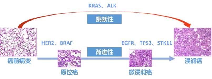 钟文昭团队在既往研究中指出了肺癌的进展有2种发展模式——渐进性和跳跃性。肺腺癌发生发展趋势取决于关键基因种子,尤其是驱动基因和旁效基因相互作用的模式。