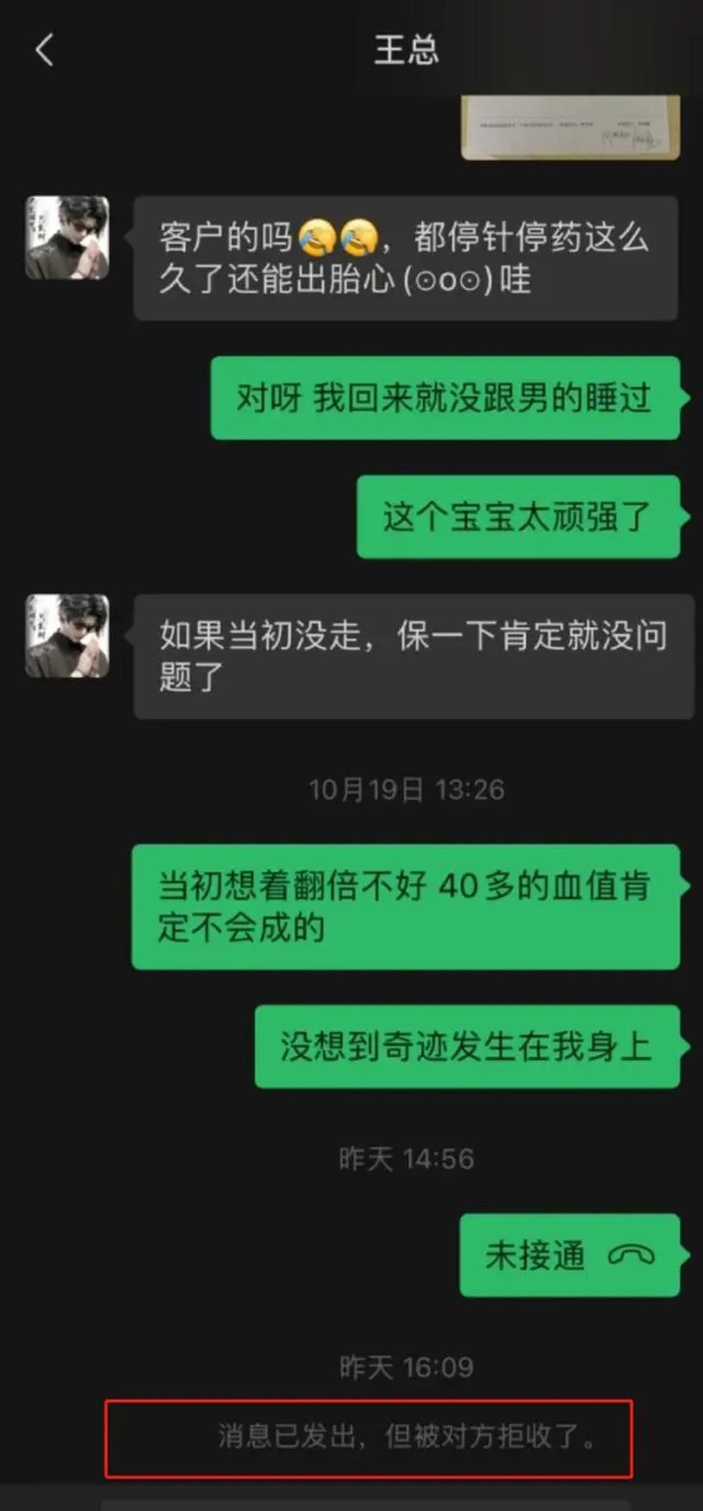 10月30日,打拐志愿者发文“女子代孕移植后遭机构拉黑”。当事女子称其接受胚胎移植后被机构怀疑非客户胎儿,机构不再提供养胎或堕胎费并威胁“无把柄,报警也无用”。