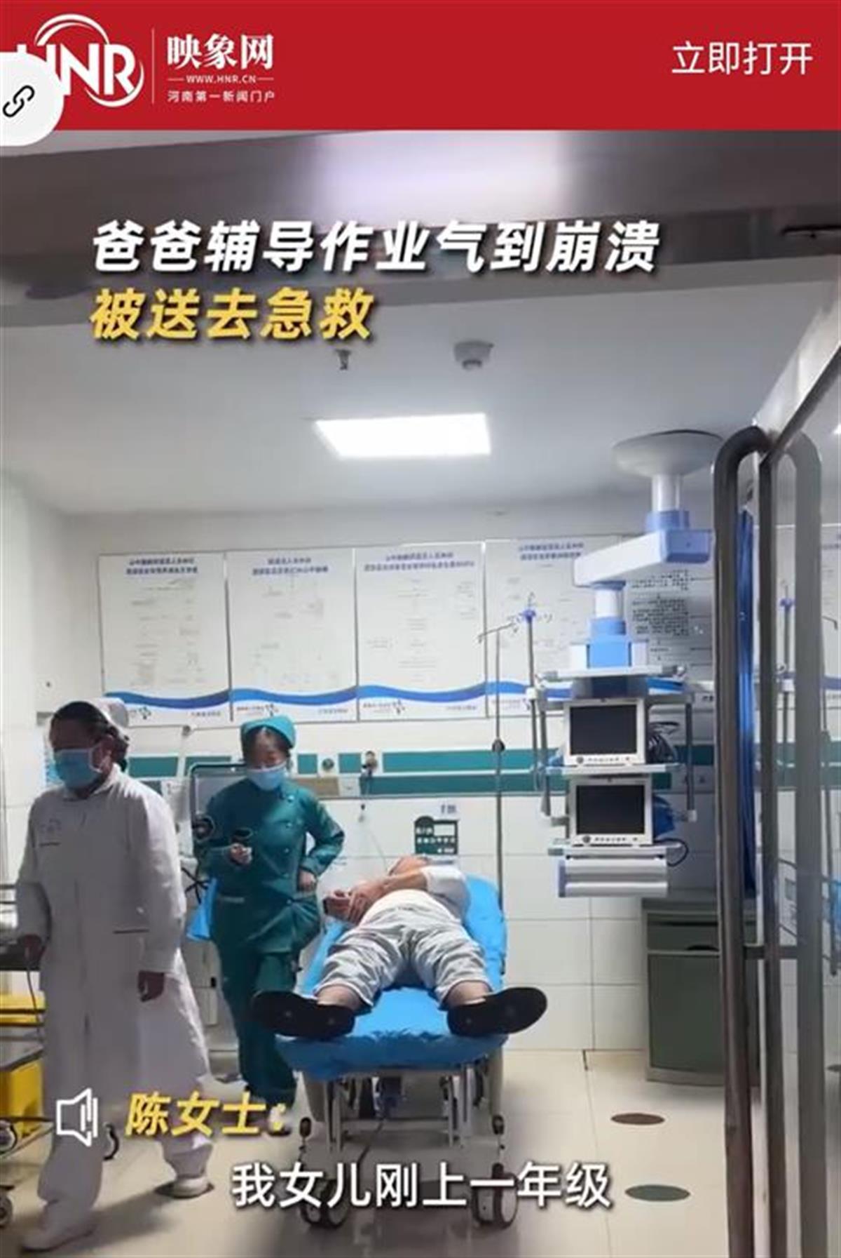 10月29日,河南南阳。爸爸辅导作业时,因为孩子拼音分不清,气得胸闷呕吐,被家人紧急送往急救室。