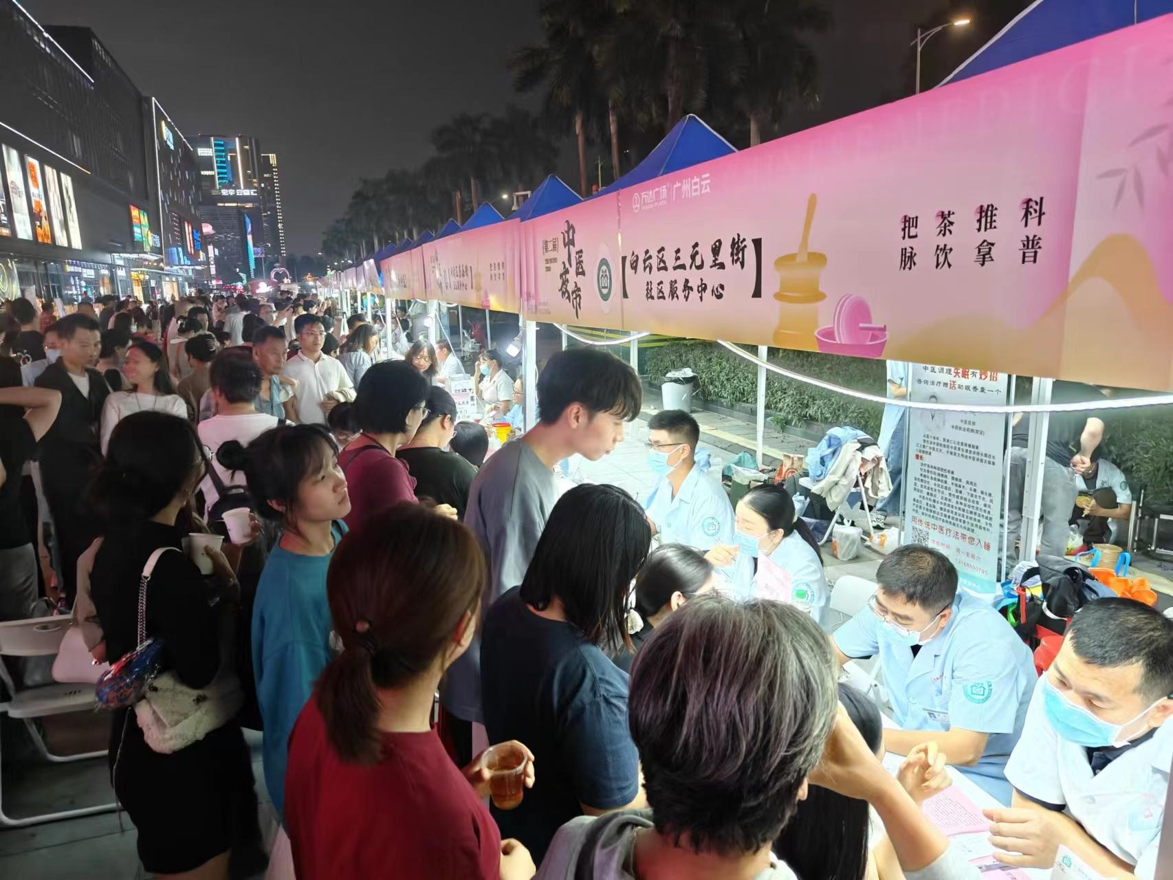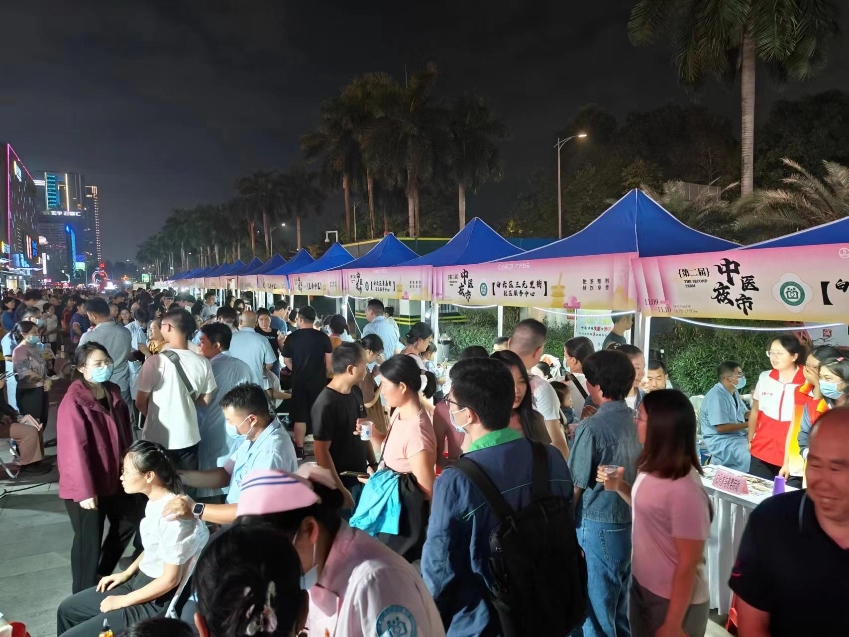 11月9日-10日,在三元里街公共卫生委员会的统筹下,广州市白云区三元里街第二届“中医夜市”在白云万达广场火热开展,夜市涵盖了问诊、开方、针灸、推拿、养生、保健、膳食、文化推广等活动,吸引了不少年轻人。在中医夜市上把把脉、扎个针、拔下罐、买个汤药包、喝杯茶饮,成了年轻人夜生活的新选择。