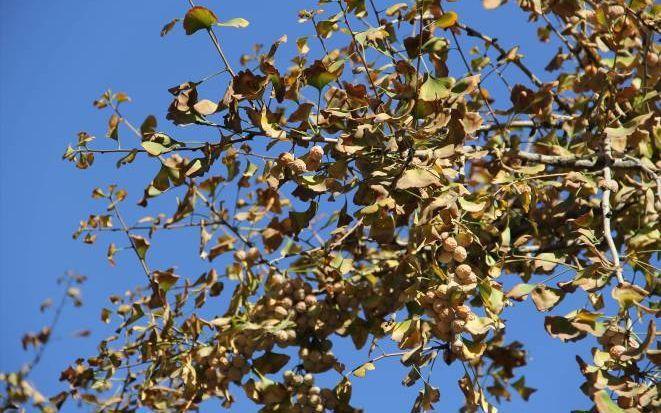 另一方面,科研团队也致力于减少银杏雌株的结果量。孙宏彦介绍,春天给雌株喷药可以降低果量,但这并非最优选择。“我最近在西城几个院区做实验,发现了一种简单有效的办法,就是开春在银杏授粉的一周中,对树冠喷水,减少雄株花粉的产生和传播,同时降低雌株授粉的概率。现在看来,效果比较明显。”