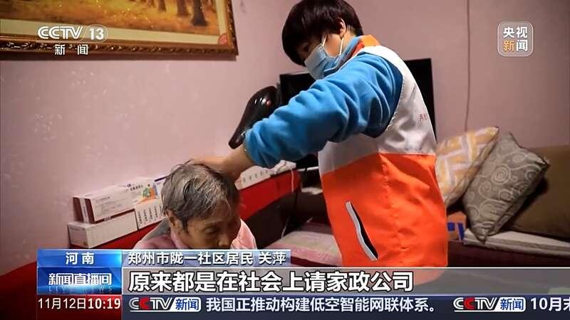 郑州市陇一社区居民 关萍:原来都是在社会上请家政公司找个人来照顾,或者是送饭,他们的价格有高有低的,也不知道哪个合适,感觉咱这个社区的服务人员专业,他们对老人的态度也非常好,而且已经服务过好几次了。在手机小程序也下过单,分类很齐全,有理发的、剪指甲的、洗澡的,非常方便。