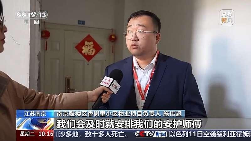 南京鼓楼区香榭里小区物业项目负责人 施伟超:我们会每天到这个存放快递的地方进行观察,如果有他们家的快递,我们会及时安排我们的安护师傅,把快递给老人送到家门口。
