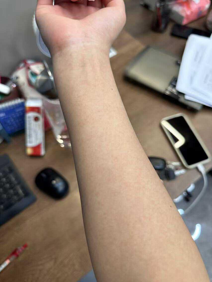 不太明显的红疹也在这一阶段出现。10月20日晚,家住佛山禅城区的林榕出现四肢疼痛的症状,经历四天反复发烧后才逐渐退烧,之后她发现,自己的双腿起了不痛不痒的小疹子。