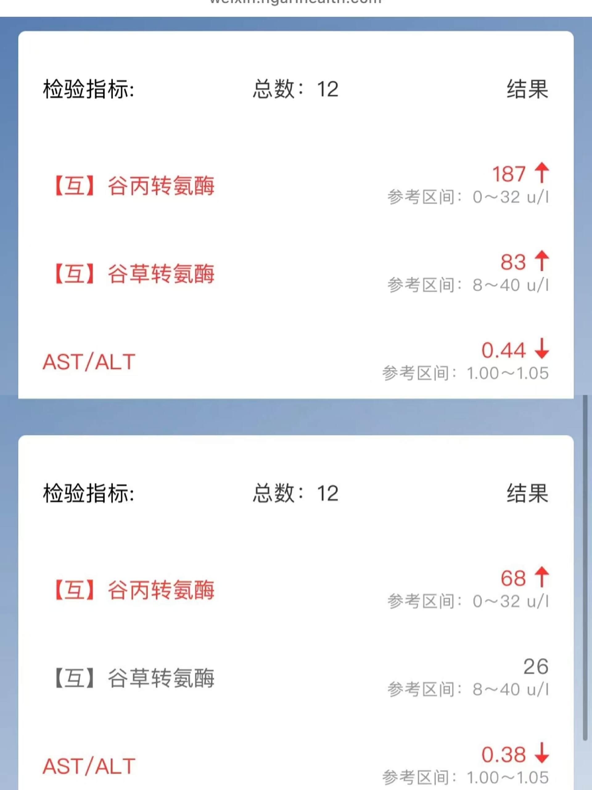 10月28日,郑琪琪两项指标恢复正常出院。三天后,复查结果却显示,郑琪琪多项指标超出参考区间值,其中,用于检测肝脏功能的指标谷丙转氨酶指数高达187,而参考区间仅为0-32,这让郑琪琪有些慌张,当天就退出了团队晚上的队训,想早点休息养肝。医生开了两瓶之前住院时护肝的药水,让她继续来医院吊针。11月6日,已吊完两次针水的郑琪琪再次检查,这次,大部分指标已回归正常,谷丙转氨酶的指数虽仍超参考区间,但也从187降至68,她才终于松了一口气。