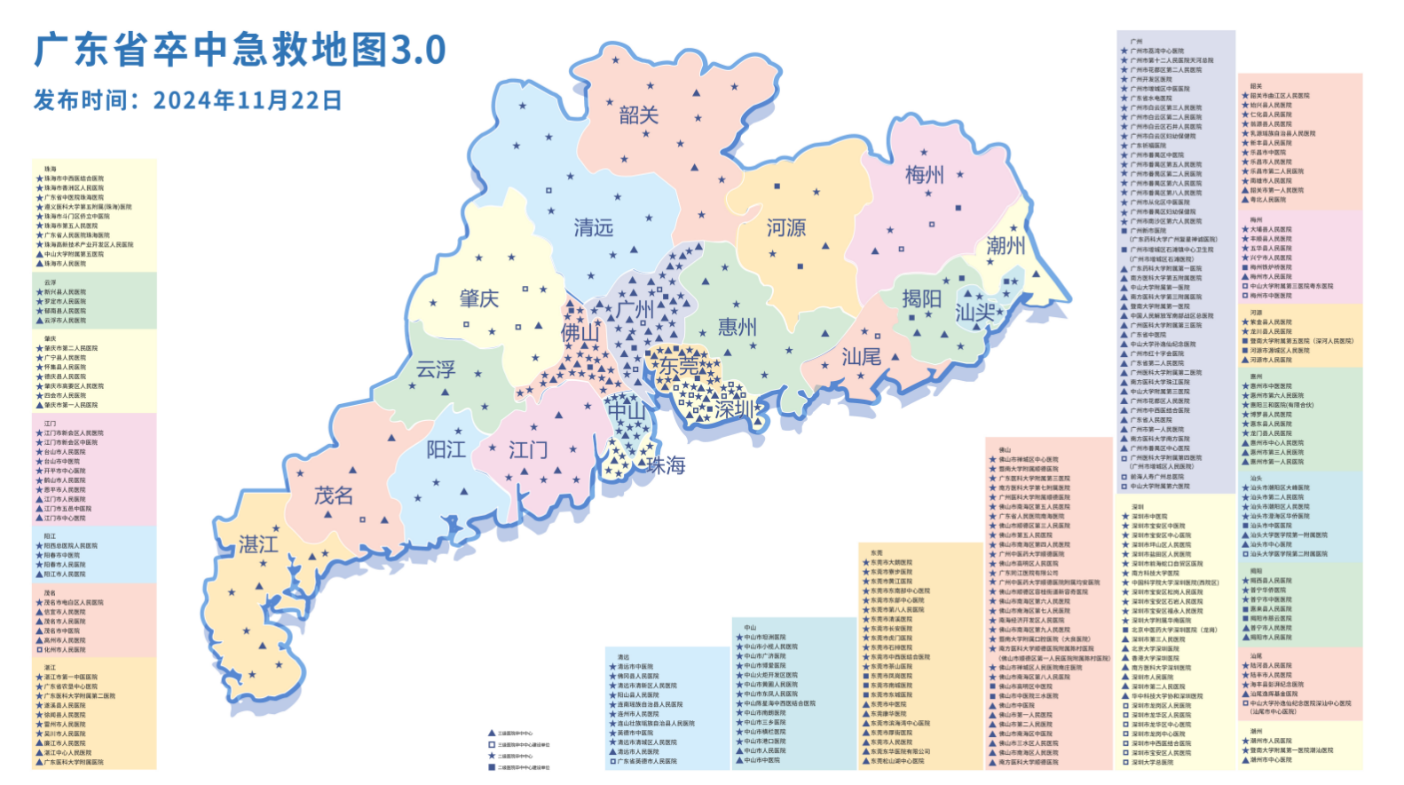 如何找到最近的卒中中心,尽快将卒中患者送院救治?11月22日,在广东省卒中中心建设经验总结交流会上,“广东省卒中急救地图3.0版”正式发布,已纳入全省258家经认证的卒中中心。同时,广东省卫生健康委还将联合高德地图,在导航地图上规范显示全省经评估认证的卒中中心,从而实现一键式导航服务。