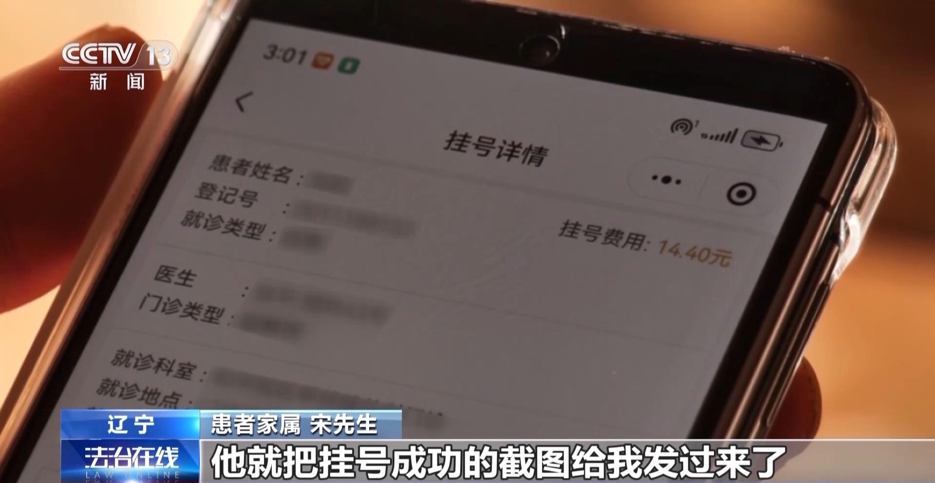 患者家属宋先生:我把情况跟号贩子说了之后,他说需要200元,然后把家属的身份证、手机号、姓名发过去。因为他也是朋友推过来的,感觉挺准的,我就给他转了200元,大概是晚上五六点钟下班的时候,他就把挂号成功的截图给我发过来了。