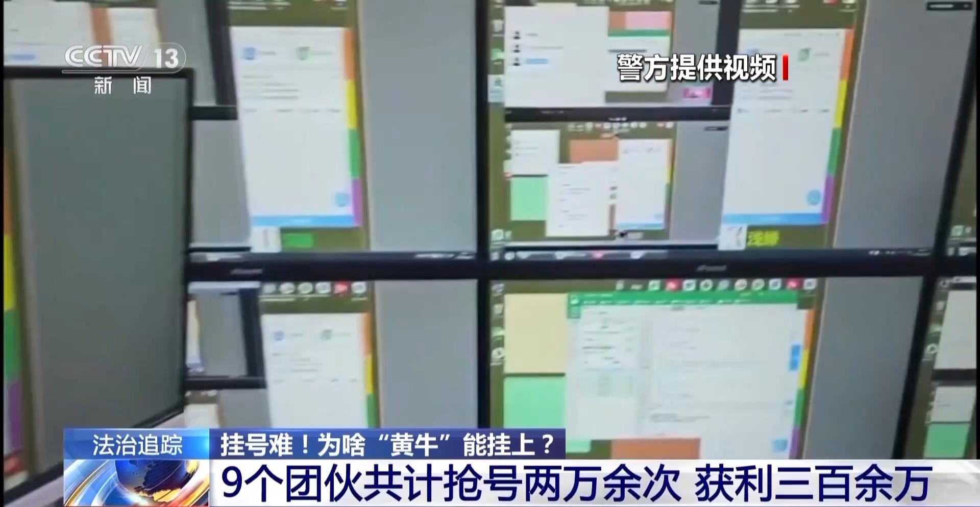 抓捕现场,电脑屏幕闪烁,几十个预约界面同时操作,黄牛能够快速抢号的秘密就藏在其中。