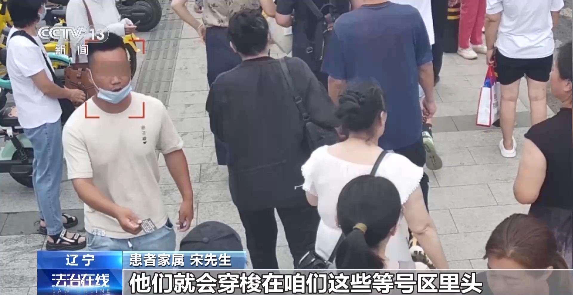患者家属宋先生:进大门时,他们都会戴着口罩、帽子,问你需不需要挂号,特别小声那种。等到检查缴费时也是,他们会穿梭在等号区中。