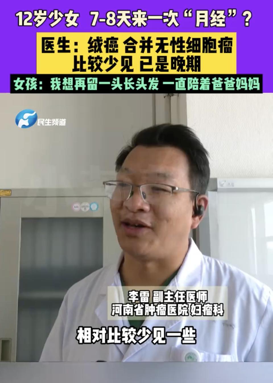 12月1日,洛阳一位12岁女孩7-8天来一次“月经”,刚开始以为是青春期月经不规律,检查后确诊癌症晚期,第二次化疗时肝脏转移。