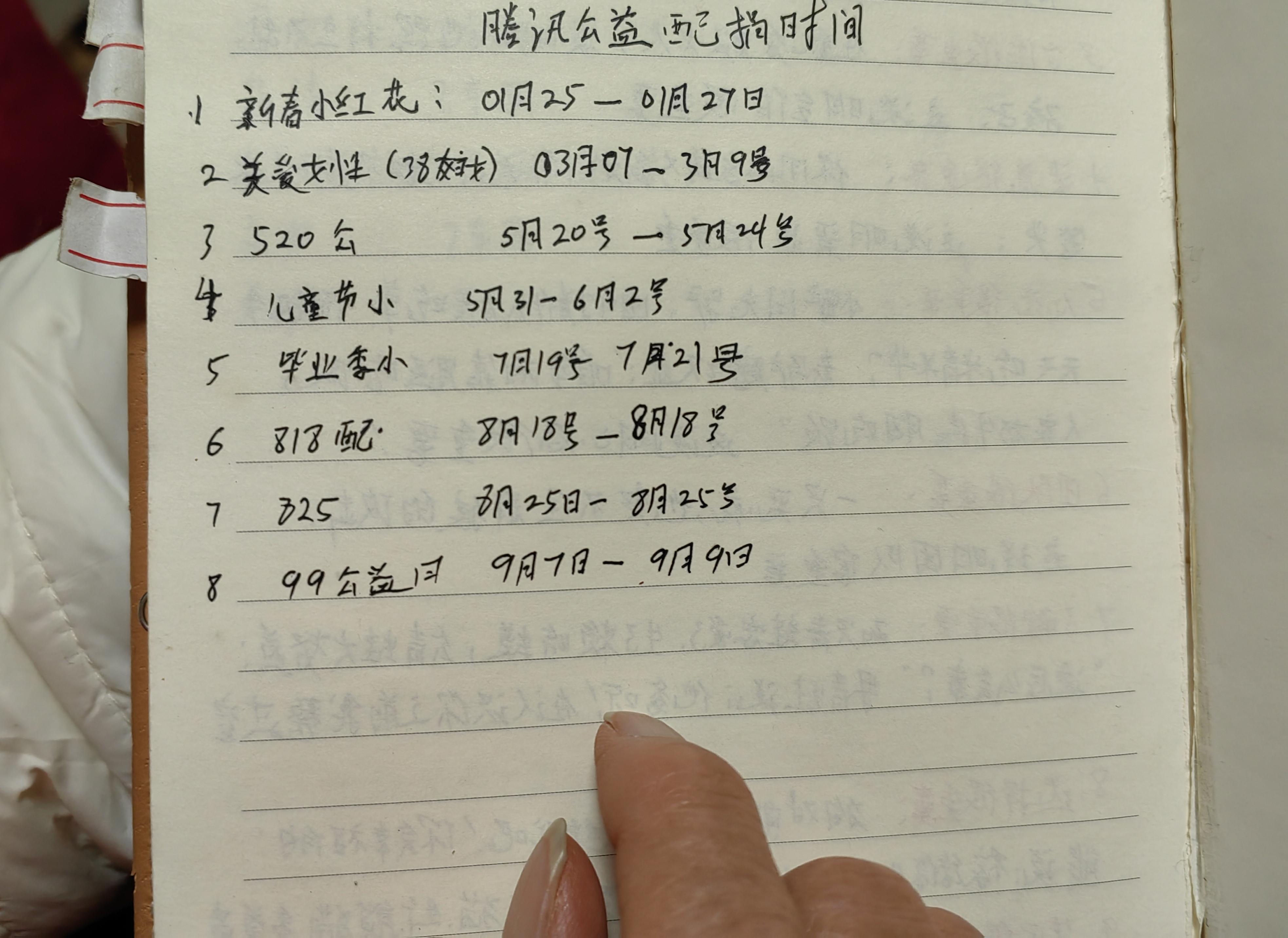 徐嫂在账本最后一页仔细记下腾讯公益一年周期内的配捐项目和具体日期,从1月的新春小红花、5月的“520公益日”,到9月的“99公益日”。一年下来,能筹集1万元左右。天晴照顾儿子,没有其他收入,每年也能通过各类配捐筹到两三万元。