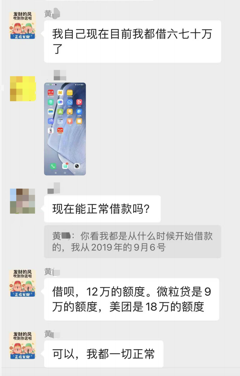 复投意味着病友要拿出更多的钱,但钱都已经投到资金盘里了,还能从哪来?黄岩在群里声称她借了“六七十万”网贷,并详细介绍了多家网贷产品,诱导病友借网贷做项目。“她说你多做一个(配捐)就多1万块钱,不差那点利息。”