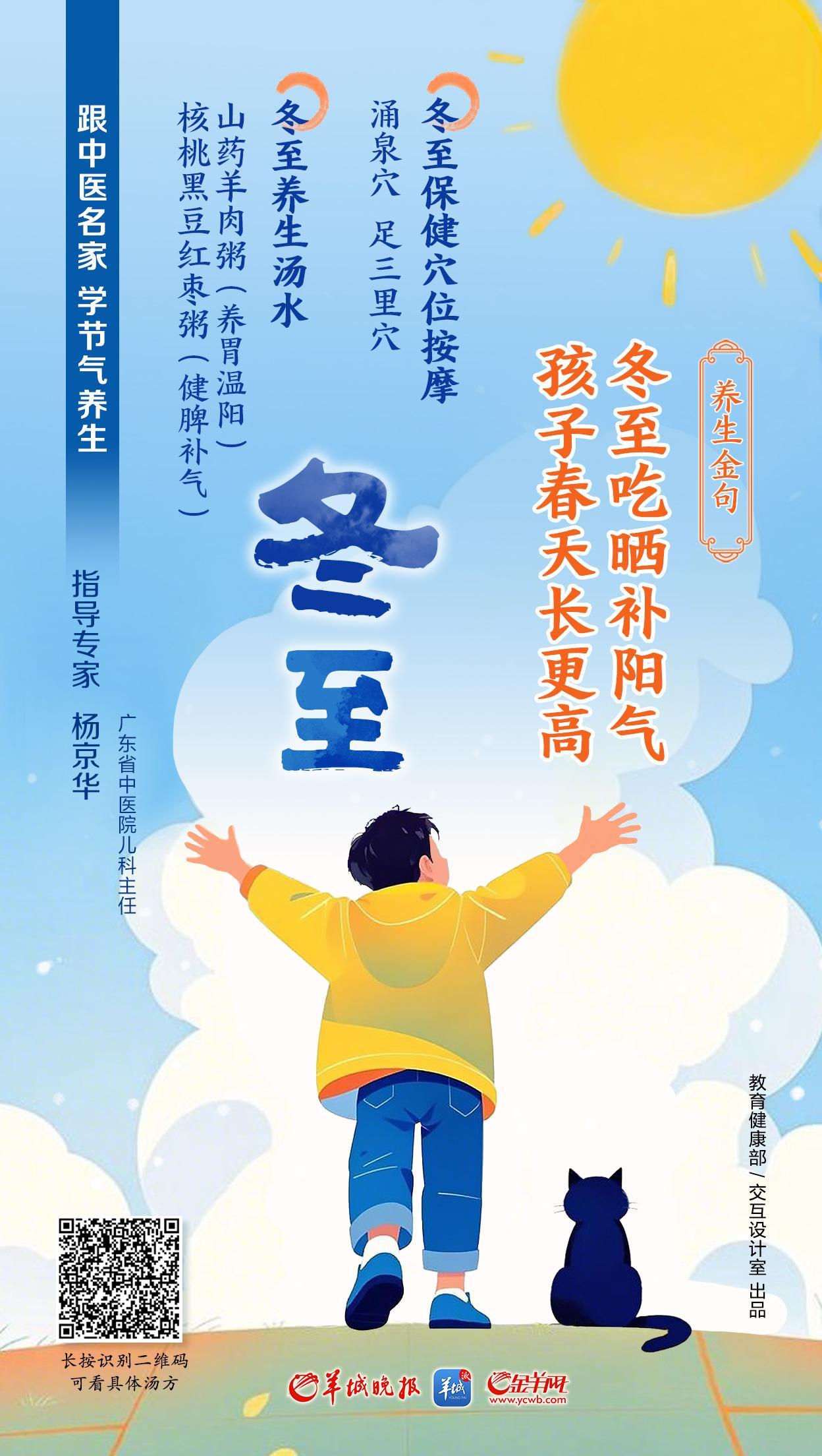 “冬至吃晒补阳气,孩子春天长更高。”广东省中医院儿科主任杨京华表示,冬至补阳气,注意吃和晒,无论是儿童还是成年人,做好“冬藏”才能助“春生”,来年开春更强健。