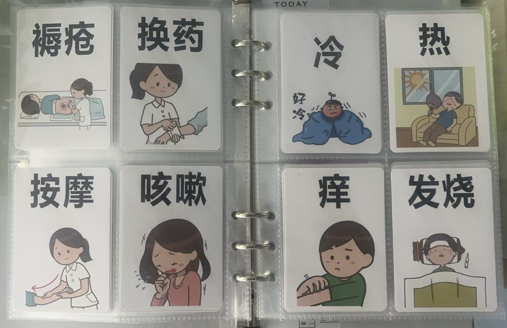 猜来猜去很费劲,且不一定能猜对。“对此,护士们就想出一个妙招,制作了一本详细的医患沟通小图册,有图片和文字,心脏痛、头痛、想吐、腹胀、呼吸困难……36个词,护士指一指,患者点点头或者摇摇头、眨眨眼就能顺利沟通。如此,护士们就能最大限度了解患者的需求,擦身、洗脸、剪头、梳头、喂饭、清理大小便,把自己当作患者家属一样,贴身护理。”