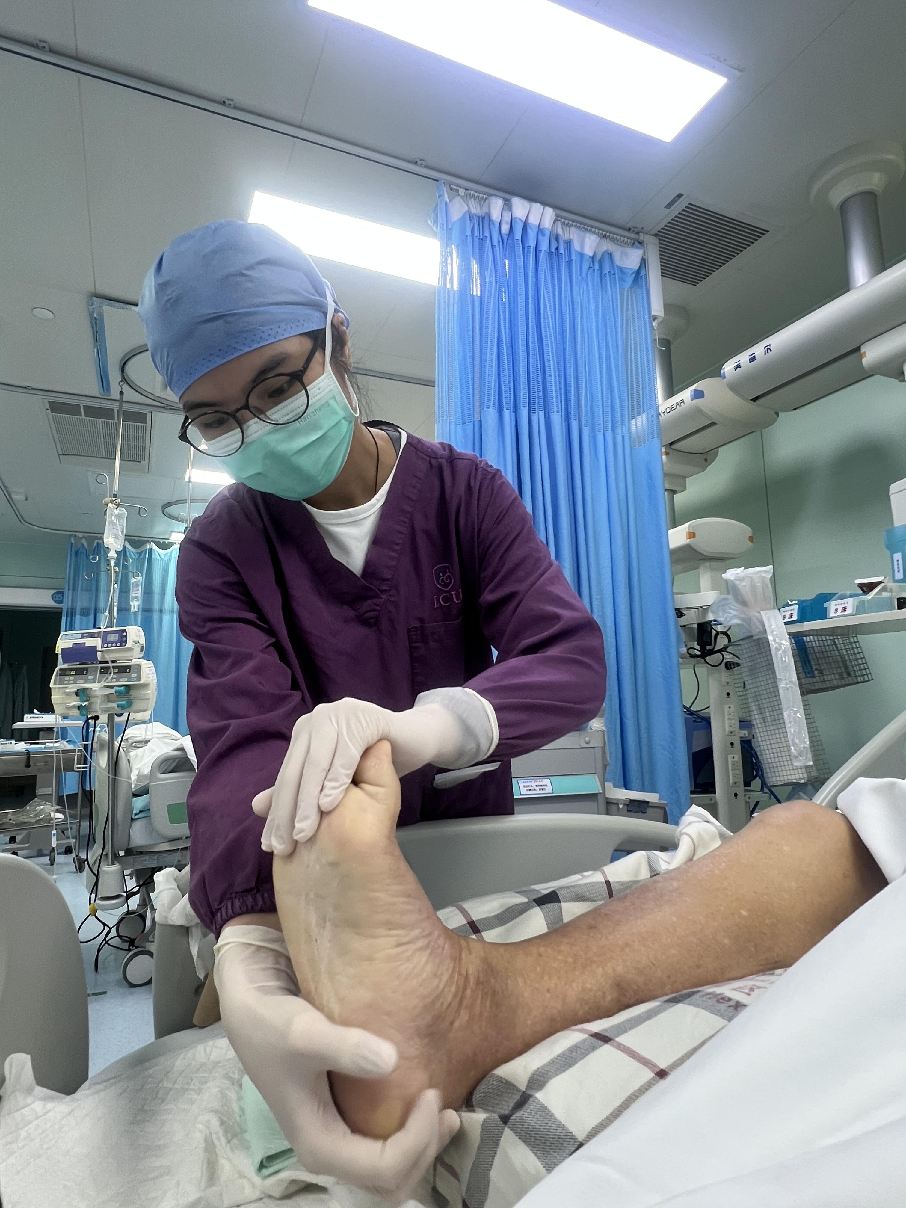 令关燕红护士长印象深刻的一名患者,因为运动神经元损伤,除了眼睛和嘴巴能动,其他身体部位都动不了。“他感觉不舒服,与主管护士沟通时就只能用眼神和努努嘴来示意,到底哪里不舒服,如果不是熟知他的护士,根本猜不到原来是脚痛。”