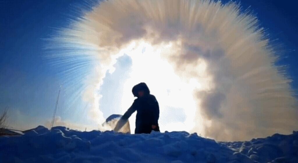 据媒体消息,“泼水成冰”其实就是冰水相态的转换,想要达到“泼水成冰”需要两个条件:一是气温达到零下40摄氏度以下,二是一杯90摄氏度以上的热水与空气的巨大温差是实现泼水成冰的关键。当气温不能达到零下40摄氏度以下,若有大风相助,能迅速带走水蒸气中的热量时,“泼水成冰”也有可能实现。