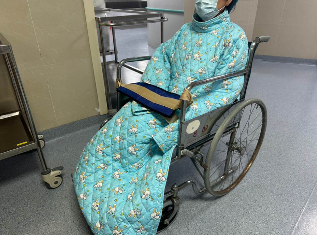 “我们团队还设计了一款术前保暖服,通过长软强磁条将保暖衣衣领处围绕患者颈部合拢,实现对患者颈部的保暖;袖片、后胸片和前摆片配合使用,在保暖披肩的基础上增加对下肢的保暖;双袖片的设计在袖片侧边用强磁条固定,方便术前有静脉留置针患者按补液需要暴露最少的皮肤,前腹部位置增加保温衣兜的设计,加强对患者双手保暖。”杨睿教授说过,在手术前,患者穿上这件保暖服,可以显著减少体温下降的风险,为手术提供一个更为稳定的生理环境。此外,保暖服的材质柔软舒适,确保了患者在术前的舒适度和安全感。