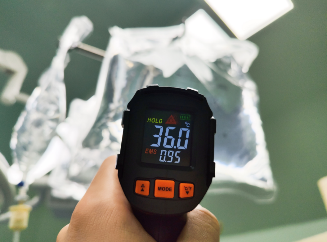 在手术过程中,医护团队会对患者实施术中体温监测,并实时调整保温措施。在手术室一隅,备有一个液体恒温箱,术中所需用到的冲洗液将在术中保持恒温,避免术中大量的常温冲洗液持续灌注导致患者术中低体温的发生。