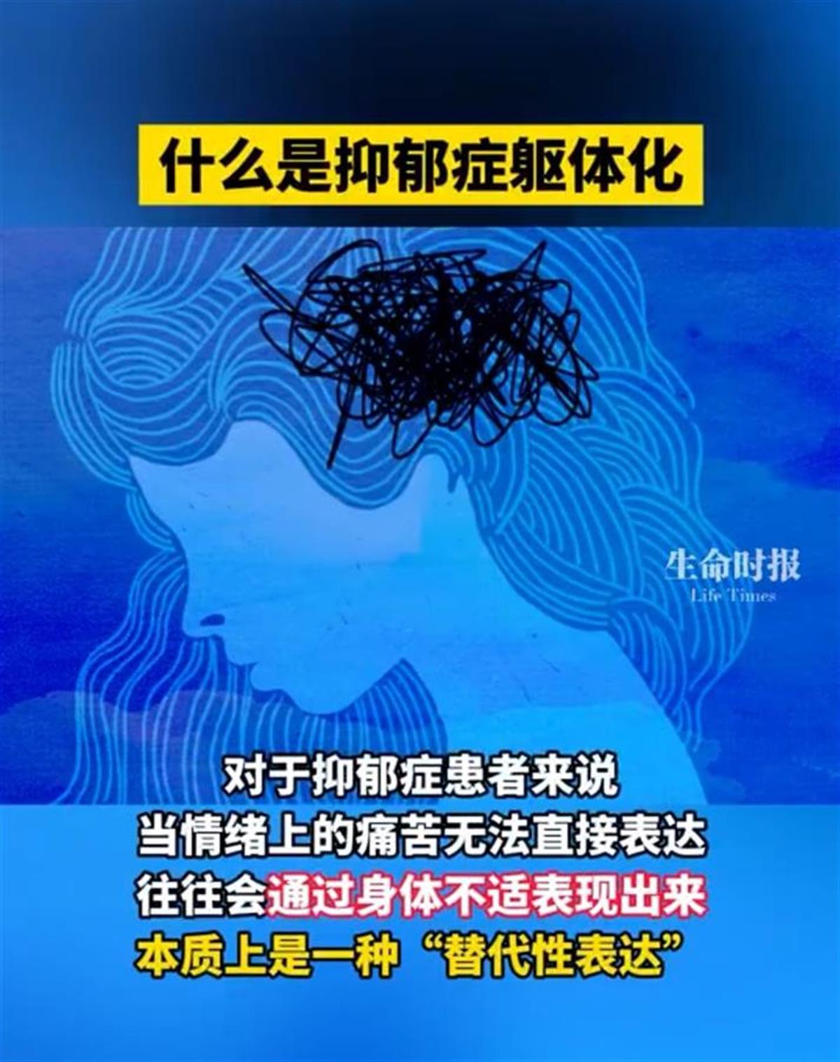 什么是抑郁症躯体化症状?对于抑郁症患者来说,当情绪上的痛苦无法直接表达,会通过身体不适表现出来,本质上是一种“替代性表达”。