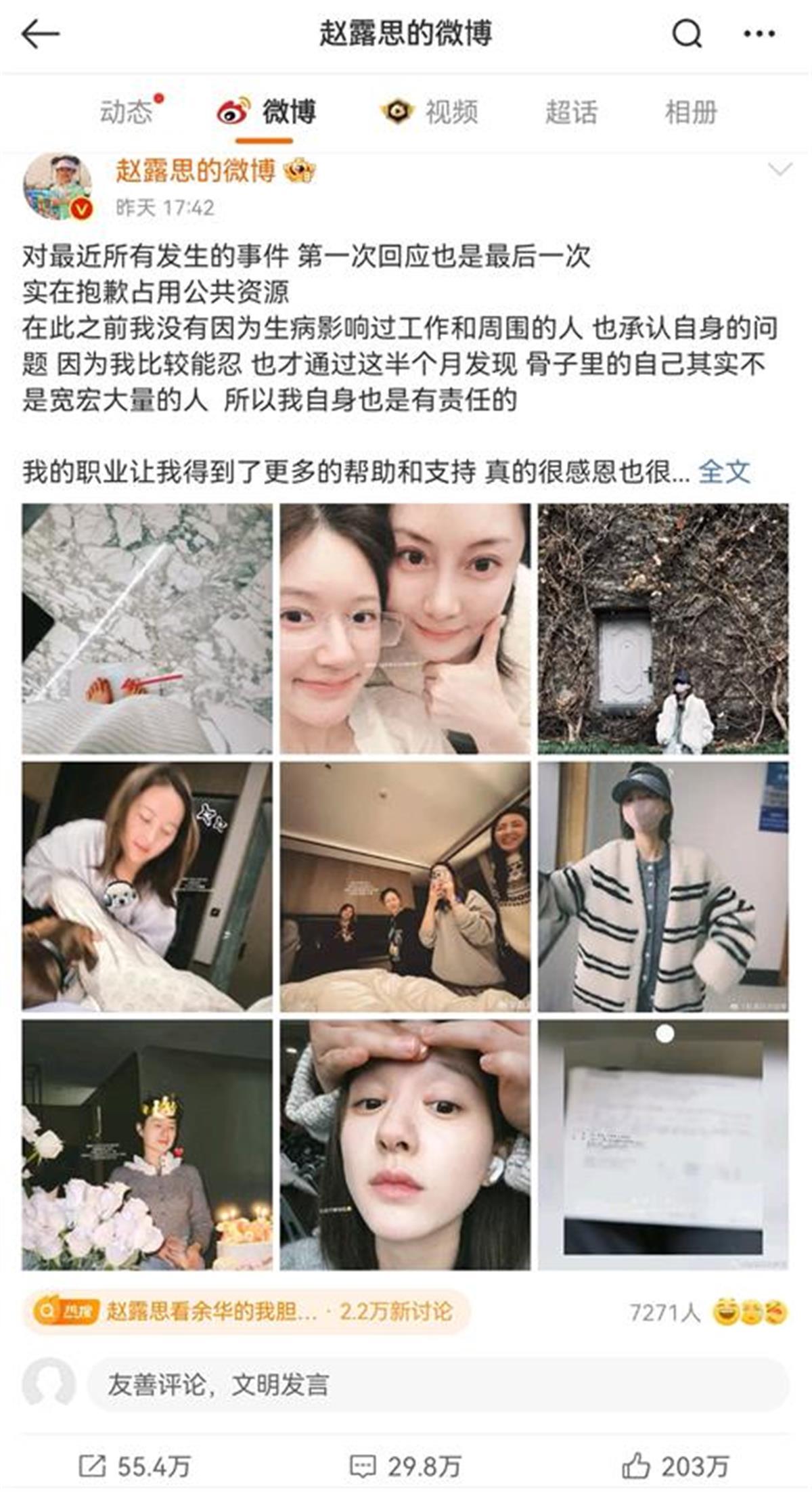 记者注意到,截至1月2日下午3时许,赵露思的微博粉丝有2942万左右,这条坦承自己患抑郁症的微博,转评赞高达290万左右,许多粉丝祝她早日康复。