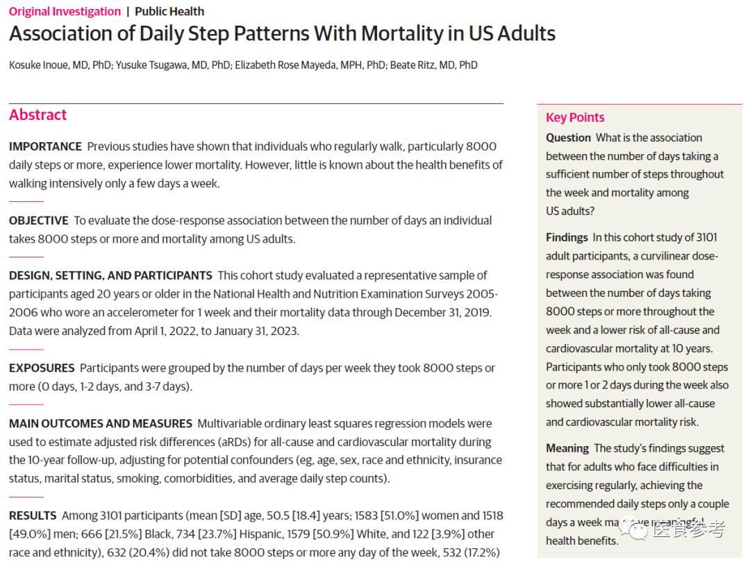 研究的结论揭示:每周仅花1到2天,每次散步8000步,死亡风险明显降低,且与每日持续走步的效果差异并不显著。