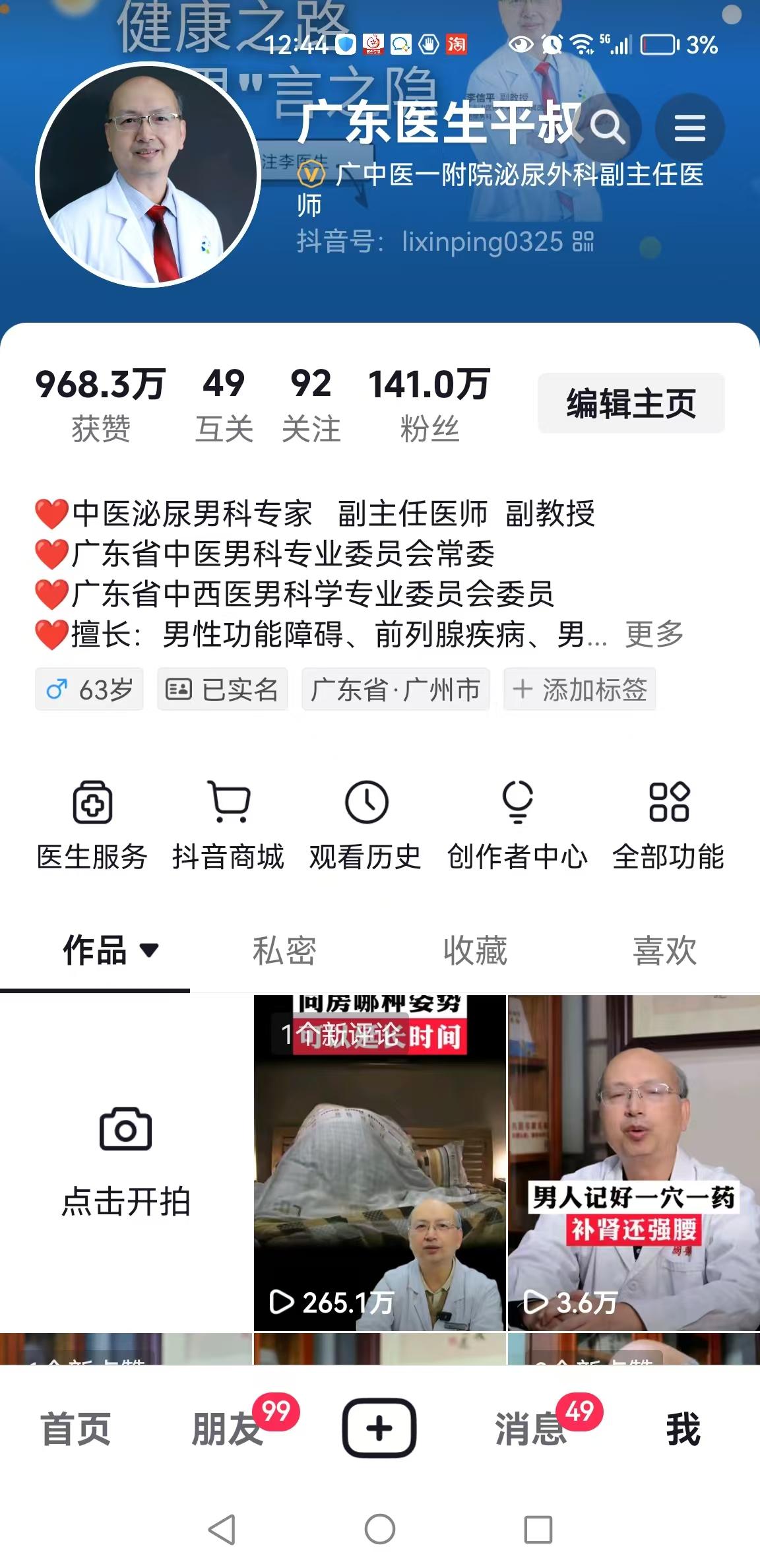 “尺度怎么这么大啊,看得人面红耳赤。”当记者看到广州中医药大学第一附属医院泌尿男科副教授李信平抖音号上的内容时,既惊讶又羡慕。短短4年时间,这位网红医生的粉丝数已经超过140万,而且每一条科普的点赞、转发量都是几万,他如何在泌尿男科科普宣传这个赛道做得风生水起?