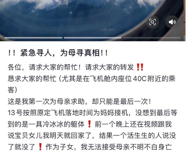 2月13日,四川达州至福建泉州的川航3U6979航班上,一名旅客突发身体不适离世。该旅客家属在社交平台发文,希望寻找同航班乘客还原事发情况。