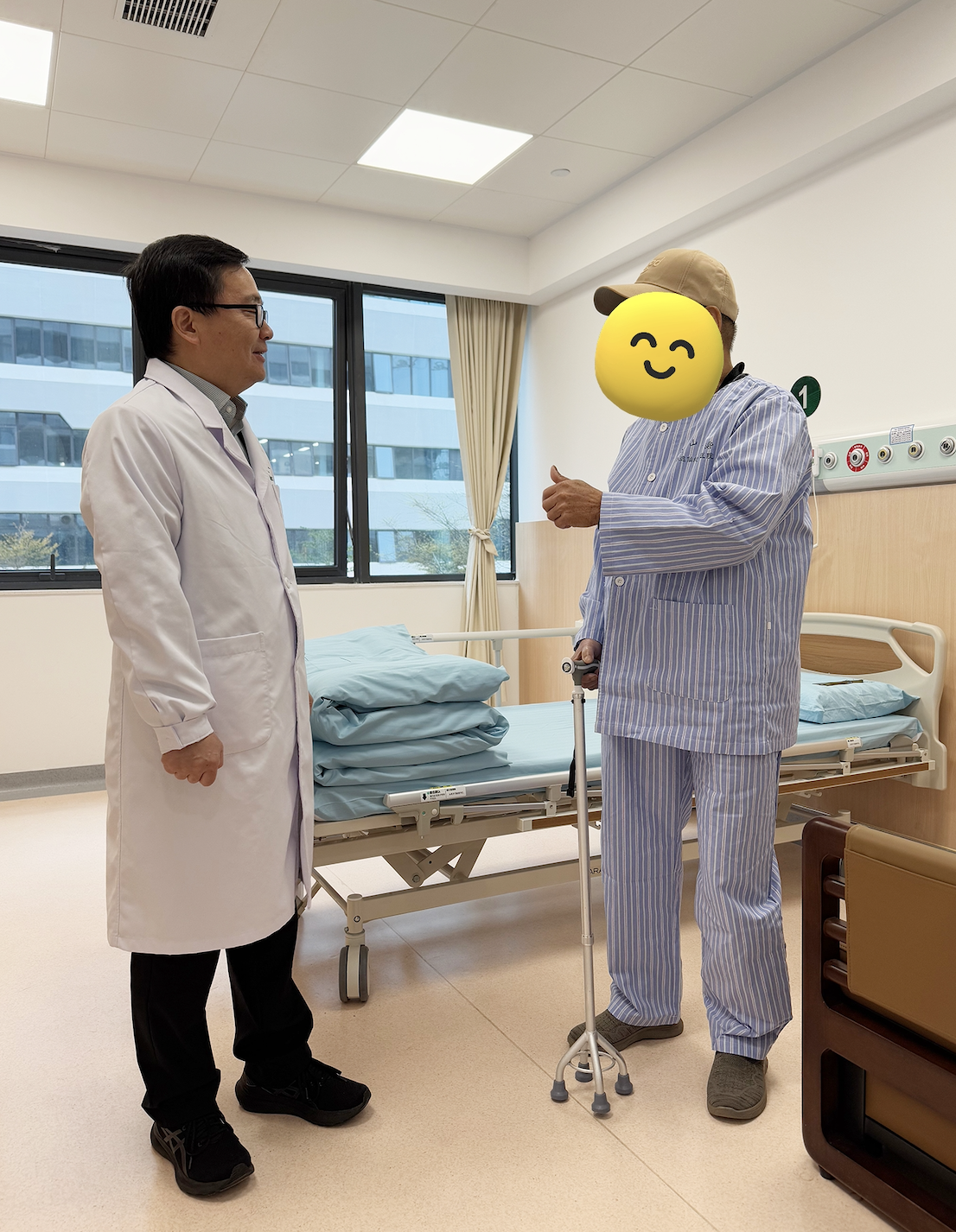 据记者了解,赖伟是康复医学科范胜诺副教授的“老患者”,听说范胜诺副教授常驻花都工作后,专程跟随他来到花都院区住院治疗。“发病时,右上肢肌力仅1级、右下肢仅2级,全身无力,需要搀扶才能坐起来。”赖伟早前在该院康复医学科接受治疗,效果显著,如今可以拄拐步行20米,右手也可端碗。此次作为第一位入住的患者,他对即将在新院区开展的后续治疗充满了信心。