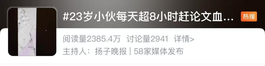 前几天,话题#23岁小伙每天超8小时赶论文血栓了#登上社交平台热搜榜。