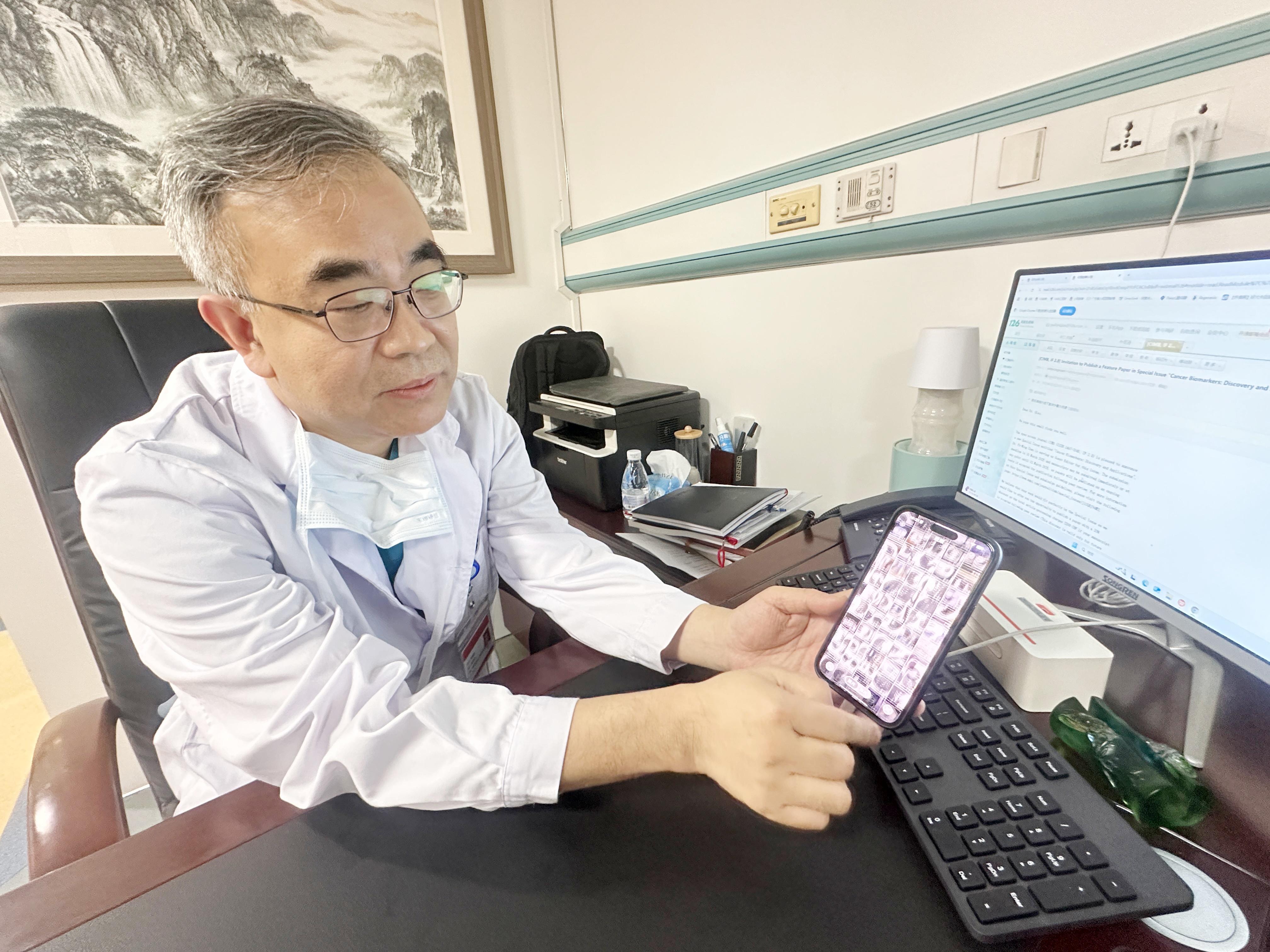 乔贵宾每天不是在出门诊就是在做手术、与病人交流,感知他们的困惑,将病人的苦恼都一一记在心里。“出门诊或者给患者做手术,只要我觉得案例特殊,就会留心保存素材,比如CT片,视频或者照片等。”记者看到,乔贵宾的手机相册里满是影像检查图片以及文献图片等。