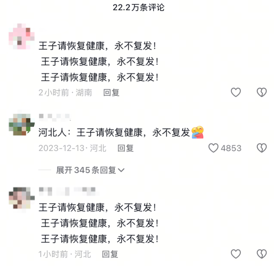 豪豪带着稚气的话语,感染了很多网友,也让这段视频“出了圈”,短短几天,他收到20万条网友的鼓励和祝福,大家的留言整齐划一,“王子,请恢复健康!永不复发!”