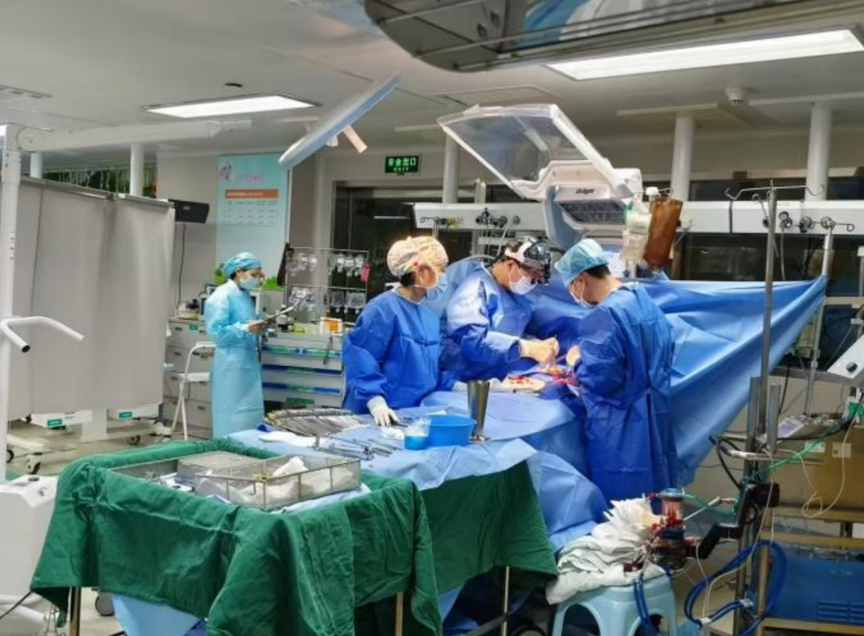 在患儿各项指标稳定后,手术由珠江医院心血管外科王晓武主任团队主刀。凭借精湛技术和丰富经验,团队成功实施大动脉转位矫正术。然而,手术过程中,王晓武主任团队发现宝宝心功能较差,左心室收缩乏力,于是当机立断,决定采用体外膜肺氧合(ECMO)辅助治疗。经过紧张有序的手术,宝宝的心率、血压恢复正常,随后被转至新生儿科进一步治疗。