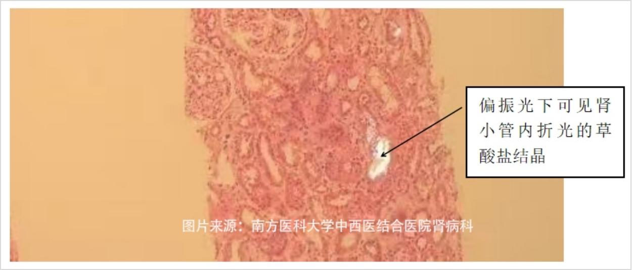 在进行了6次血液透析后马女士尿量逐渐恢复,血肌酐下降至230umol/L。结合活检病理结果以及进一步酶检测以及基因检测,马女士被诊断草酸盐肾病及法布雷病。