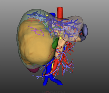 此外,医院还运用可视化软件技术,将CT数据转化为3D立体模型,将患者的肝脏模型“搬”到电脑屏幕上,计算出肝总体积、切除肝脏体积和剩余肝脏的体积是否足够等数据,医生能够提前发现血管变异,预判肿瘤与血管的位置关系,制定详细的手术方案。